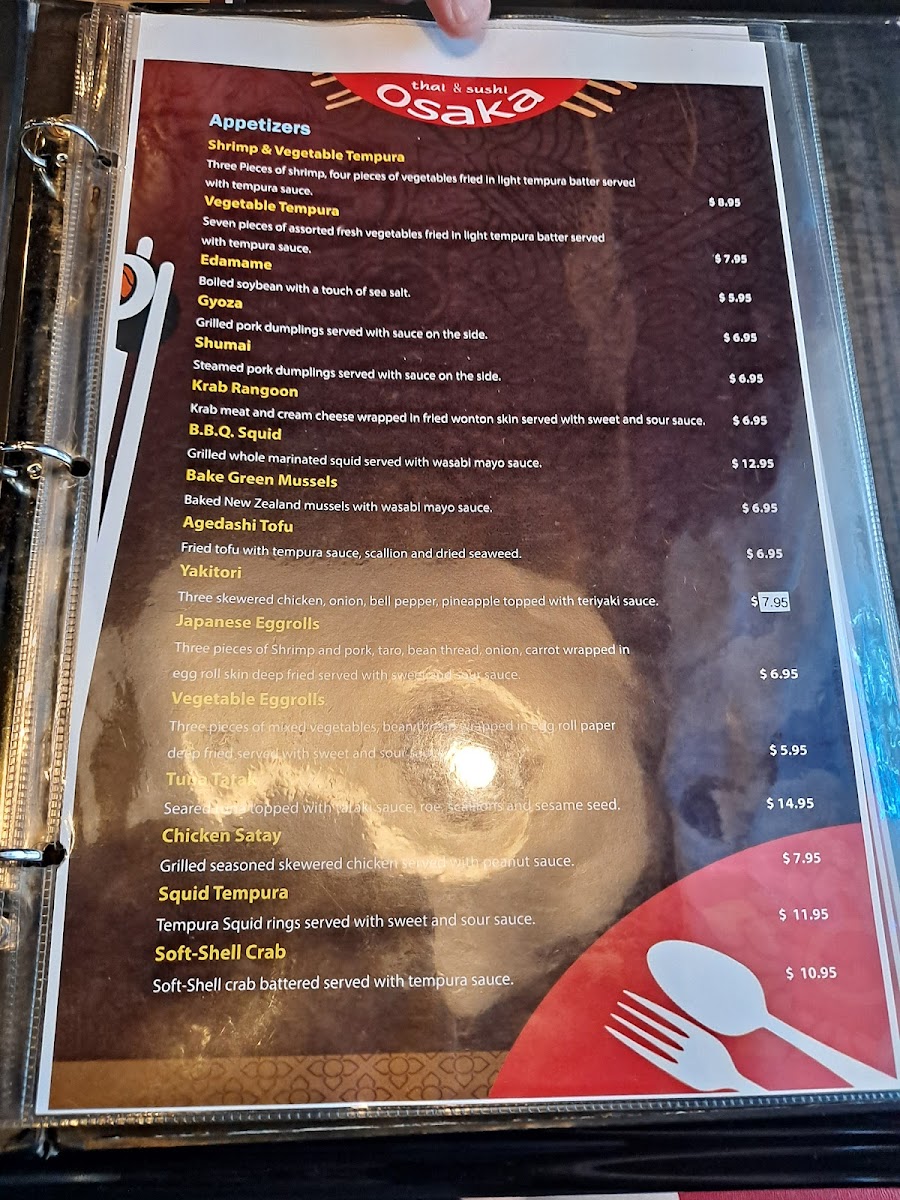 Welcome to Osaka Sushi & Thai Restaurant, where culinary artistry meets authentic flavors in the heart of Madeira Beach, FL. Dive into a diverse menu that boasts one of the largest sushi selections around. Start your culinary adventure with delectable appetizers like the Chicken Satay paired with a rich peanut sauce or savor the subtle taste of boiled Edamame.